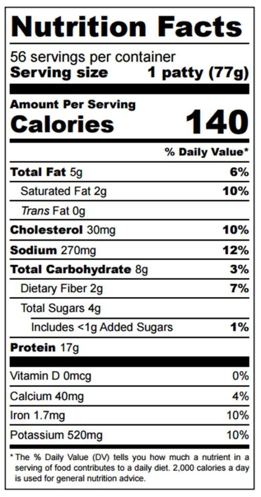 • Case pack 56/3 oz patties